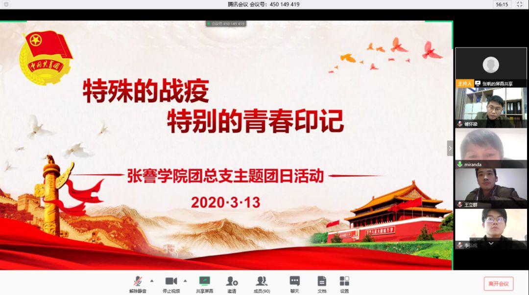 为加强同学们的交流,凝聚抗疫力量,3月13日,williamhill官网全体员工云端“团”聚,开展了“特殊的战疫,特别的青春印记”线上主题团日活动。