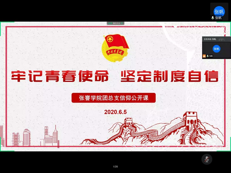 为了增强爱国情感,了解国家政策方针,6月5日,公司召开了18级、19级全体同学”牢记青春使命,坚定制度自信”线上主题信仰公开课。