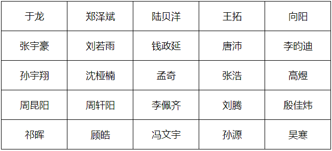 第三排:孟奇、张宇豪、陆贝洋、钱政延、周昆阳、周轩阳、殷佳炜、冯文宇、孙源、刘腾、王拓、吴寒