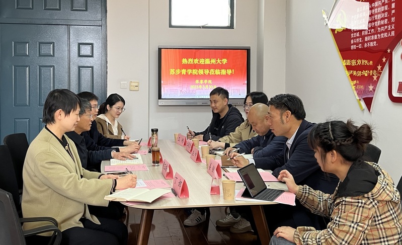 3月30日上午,温州大学苏步青公司党总支书记应中、执行经理姜锐一行来公司调研交流。williamhill官网直属党支部书记、经理倪红军主持会议。