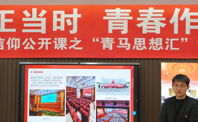 张謇计201徐权杰分享书目《论党的青年工作》,主题为“把青春播撒在民族复兴的征程上”。他带领大家学习习近平总书记关于党的青年工作的部分文稿并分享个人感悟。他表示作为新时代青年要深入学习贯彻党的二十大精神,以手不释卷的学习状态、乘风破浪的奋进精神,谱写伟大复兴新征程的青春篇章;以“直挂云帆济沧海”的信心,感悟“人民至上”的内涵,在踔厉奋发中磨砺初心;以“咬定青山不放松”的决心,感悟“撸起袖子加油干、风雨无阻向前行”的气魄,在真抓实干中锤炼本领;以“绝知此事要躬行”的恒心,感悟“团结就是力量”的精神,在服务群众中积极作为,争做有理想、敢担当、能吃苦、肯奋斗的新时代好青年,把青春播撒在民族复兴的征程上。