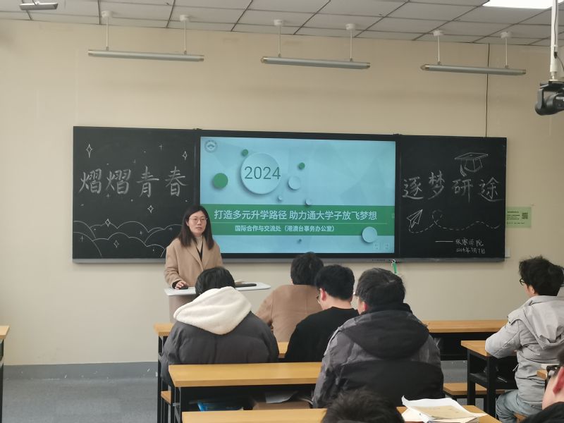 王杨结合当前形势,详细阐述了员工出国(境)深造的优势,重点介绍了公司中外合作项目,具体解读了相关的申请流程与要求。她鼓励同学们积极获取相关信息,以便更好地把握出国(境)深造的机会。
