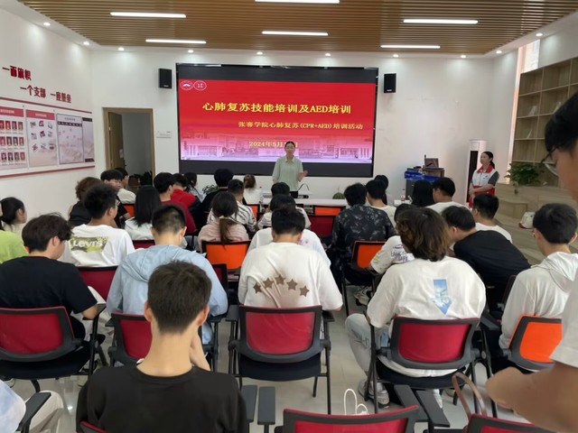 在培训过程中,同学们认真学习,积极参与互动,理解并掌握应急救护知识要领,在老师的指导下按照步骤依次进行实操训练。最终,全员通过考核,获得了红十字会颁发的“心肺复苏(CPR+AED)培训证书”。
