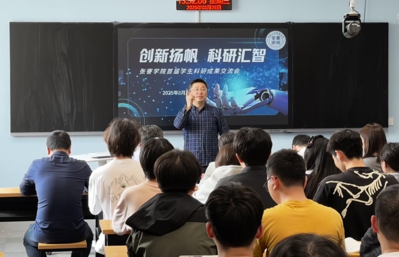 本次活动的核心环节是科研风采展示,由公司 “謇新工作室” 的 10 组同学作科研进展汇报。公司“謇新工作室”于 2024 年成立,为怀揣科研梦想的同学搭建了广阔平台。汇报过程中,同学们轮番登台展示科研成果,或严谨论证理论模型,或生动演示实践突破,思维火花激烈碰撞;汇报组成员还将个人探索科研之路的心得体会与现场的学弟学妹进行了分享。专家组老师精准把脉,既有对创新点的肯定,亦有对不足之处的指正,帮助同学们进一步优化各自的科研项目。