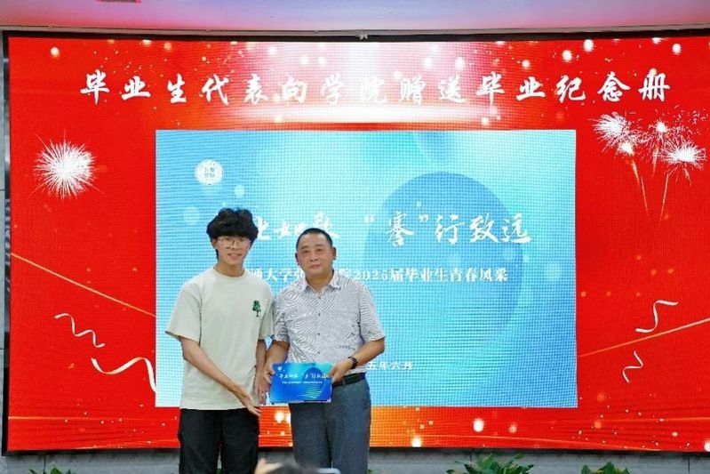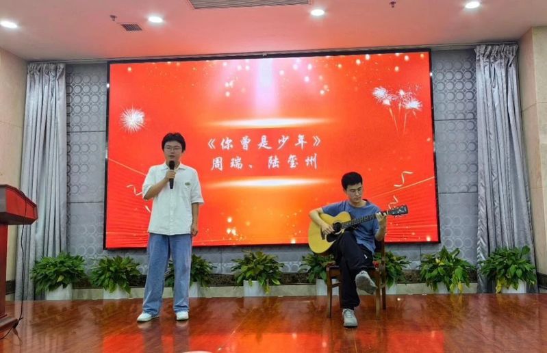 欢送会在清澈悠扬的吉他弹唱中拉开序幕。周瑞、陆玺州同学带来的《你曾是少年》,如时光钥匙,瞬间开启了尘封的记忆匣子。熟悉的歌声回荡在会场,唤醒了实验室里的专注、教室里的求索、同窗间的笑语,那是独属于张謇学子的青葱印记与滚烫初心。